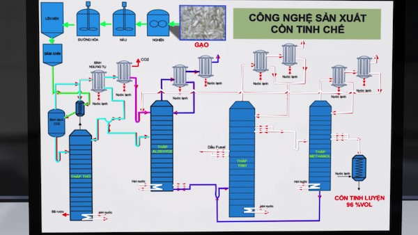 - phương pháp sinh học bằng cách lên men đường hay ngũ cốc với men rượu: mía mật, tinh bột như sắn, ngô, gạo… và chưng cất tạo thành cồn.