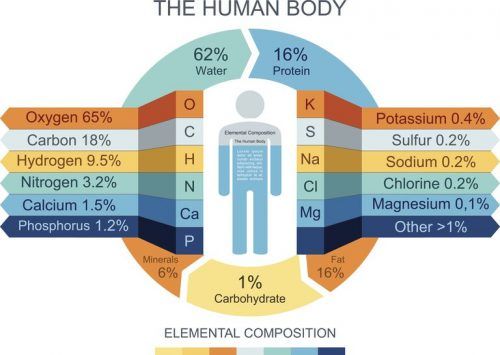 Sau đây là tỉ lệ phần trăm các nguyên tố trong cơ thể chúng ta: